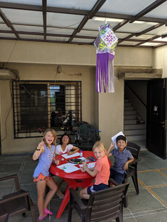 We parted ways with kind Yogesh and made it back with minutes to spare, to be able to join Kaveri and pick the kids up from their bus stop! They weren’t expecting us, so it was super fun to see how happy they were at the surprise of us tagging along for pick-up. The kids ran back inside and immediately (washed hands - a must! and) bounded into the playroom for some final hours of play together. I packed us back up while Doug focused on SE Asia stuff during the stretch before dinner.