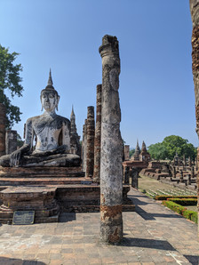 We gawked at the gorgeous temples and Buddhas that we encountered along the way. The Buddhas appeared less stern than those we saw in Bhutan; they had a hint of the Thai smile :) Sukhothai National Park is divided up into a few main sections, each of which requires it’s own ticket to enter. We hit all of them over the course of our three days and absolutely loved meandering along. Some highlights were the main temple complex, a huge seated Buddha, a standing Buddha atop a hilltop and some surrounded by elephant pedestals. We were struck by how well maintained the temples were. Each temple (or collection of a few near each other) seemed to be managed by a single caretaker, who would be sweeping up the leaves, burning leaves to remove the waste, etc.