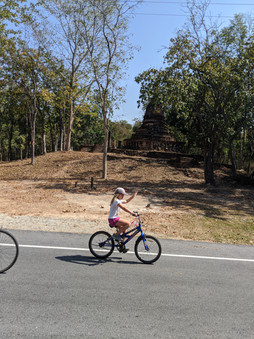 One of my favorite things was that there were visual cues all around us that it was their Fall season. The leaves were certainly past their peak colors, but yellow, tan and reddish leaves were still everywhere we looked. Those on the ground would crisp & crunch brightly under our wheels. Fall is my favorite season by a landslide. I missed having a proper Fall this year, and enjoyed seeing pictures of Fall from family & friends afar Sukhothai looked like Fall in many ways, but felt like the most gloriously perfect Summer day. Perfect combination!