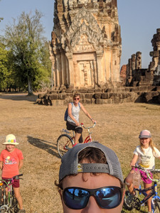 Our days were spent cruising around & exploring on our bikes for hours on end. We’d walk to the main drag of town (about 15/20 mins walk from our hotel) and rent bikes first thing in the morning from a little shop in town. Bikes were 30 Thai Bhat a day, which works out to about $1 USD. Can’t beat that! No helmets to be found anywhere, which seems to be par for the course in this part of the world. Even on motorbikes/scooters, you hardly ever see anyone wearing a helmet. We’re quite militant about the girls (and us) wearing helmets for safety, but we had to turn a blind eye these days.