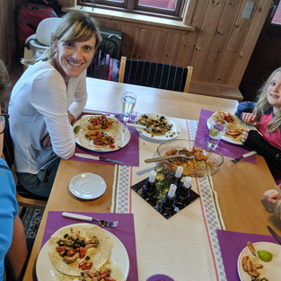 Doug whipped up a yummy chicken taco dinner. Middle picture below is of Doug & Paige's feet as they cook away; slippers on loan from our rental house :) After dinner we cozied up to tea and biscuits (Digestive dark chocolate biscuits, a favorite of Doug’s from his days on the international Tennis circuit). Lovely way to end our travel day. Ready to crash and start our Faroe exploring in the morning!