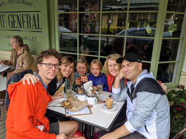 The girls were excited to see Trisha & Ben in the morning. We all enjoyed a leisurely breakfast, a huge spread of sourdough bread, eggs, avocado, yogurt and the like. Sadie watched attentively & learned from Ben how to start a fire, so we were all cozy warm on the rainy day.