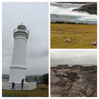 The weather wasn't great on drive day . . . it started out as just patches of light rain, and gradually moved towards torrential downpours. Armed with raincoats, it's didn't stop us from popping out of the car to explore a few places. Kiama Blowhole and Lighthouse was a fun stop. Kiama translates as “where the sea makes a noise” and apparently their blowhole is the largest in the world. We were mesmerized by many rounds of massive sprays of water blowing up through the sea cliff hole.