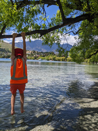 Sadie's Outdoor Ed week culminated in a 15 km (9 miles) round trip bike ride from school, along Lake Wakatipu, to Frankton Beach. The Year 3/4 students had received various bike safety lessons at school in the weeks leading up to it, as well as biking assessments to ensure they were ready for the challenge of the ride.