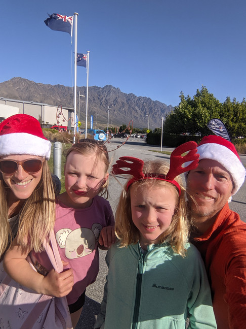 It turned out to be quite the show! The overall theme was that Santa was not going to be able to make it to NZ for Christmas without any Summer snow. As it turned out, it snowed and Christmas was saved...phew! There were dancing sheep, reindeer (Paige was one) and even the Queenstown Men's Ballet - it's beyond description, just watch to understand...