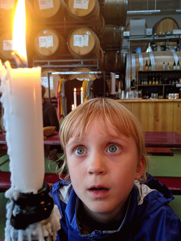 By the time we finished dinner the rain had stopped. The sun even made a brief appearance, but then returned to its hiding spot behind the dark clouds. A short walk down the waterfront was the Mikkeller Brewery. Doug & the girls would have been happy to walk on by, but I was keen for us to pop in after reading about it in several Copenhagen travel posts. They had a few sour beers on tap, so it was an easy choice to stay :) We had the joint practically to ourselves. We enjoyed a pint each by candlelight and the girls did their giggly, indepedent thing.