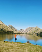 On the homestretch of the trail we spotted a self contained van parked along the lake. We walked by and said hello to the guy seated in front of the van, enjoying the beautiful lake views. We ended up chatting for quite some time with the kind couple. Eoghan and Rachel are from Bristol, England and traveling for six months around NZ in their self contained van. We exchanged stories of NZ life during stay-at-home orders, favorite pre-covid19 NZ spots, life in a van, etc. We really enjoyed our time chatting with them and exchanged details to follow each other's travel shenanigans on Instagram. We ended up running into them on the streets of downtown Queenstown later that same day. We even ended up inviting them over to our place for coffee over the weekend (more on that in this post) and had a blast! Yet another example and reminder in our travels of how one chance encounter can lead to a connection and new friendship.