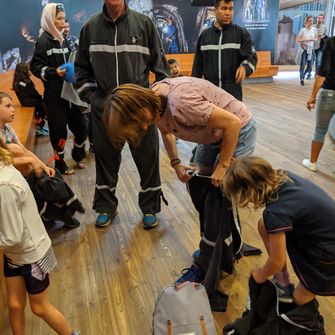 We suited up for our tour! Mandatory head-to-toe jumpers were divvied up and giggles ensued in our group. We were later glad we had them; it was a cool 50 degrees down in the mines.