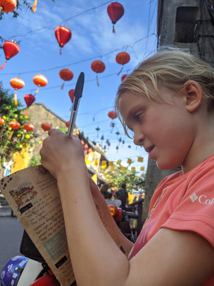 We didn't leave the hotel until lunch, heading out for a family competitive scavenger hunt through Old Hoi An. I'd found the Scavenger Hunt and Painting class for the girls in our attempt to give experience-based gifts out of want, but also need - where would anything go in our luggage? We also just don't like stuff ;)