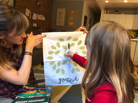 Sadie also volunteered to make a "Friendsgiving Tree", inspired by something Erinn kindly gave us two years ago. It was a Grateful tree, where we filled in the leaves with things we are thankful for. Here are some pics of us completing the Grateful tree gift from Erinn, Thanksgiving 2018 in our NYC apartment: