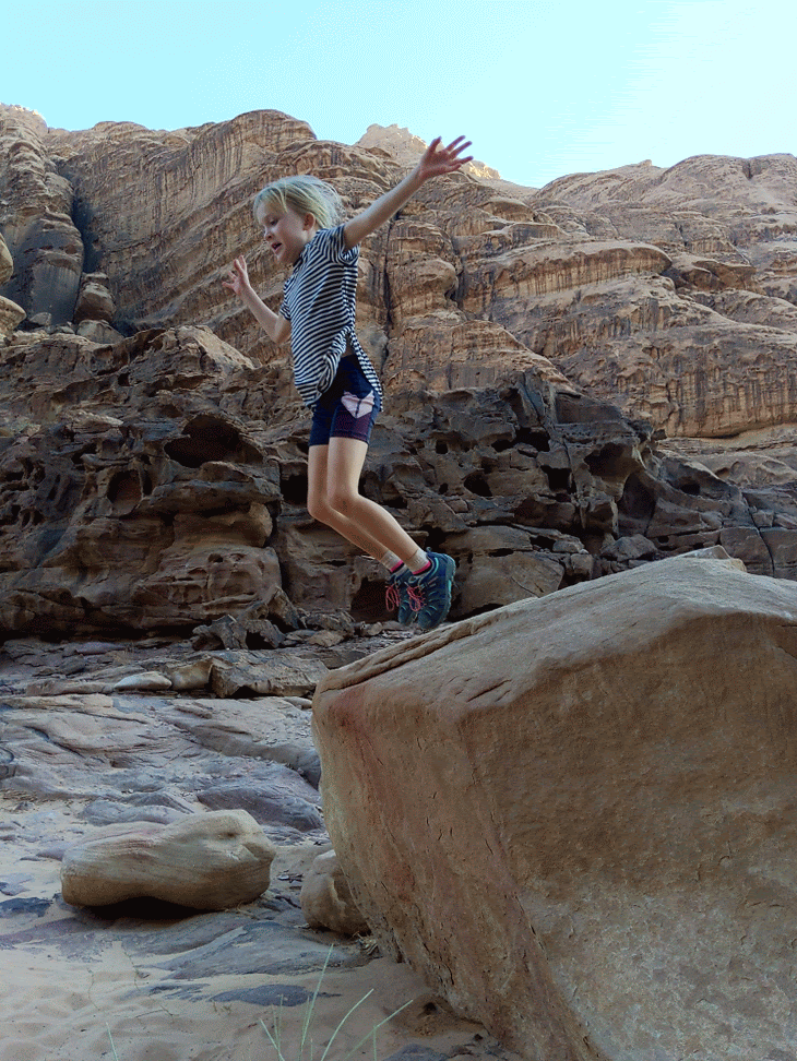 The main event (aside from sleeping in the desert) while we were in Wadi Rum was a 2-hour sunset jeep ride through the desert. The girls especially were pumped!